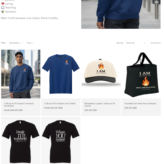 We create a clean, easy-to-use ordering page for your church or ministry, allowing your community to purchase merch without the complexity of running an online store.